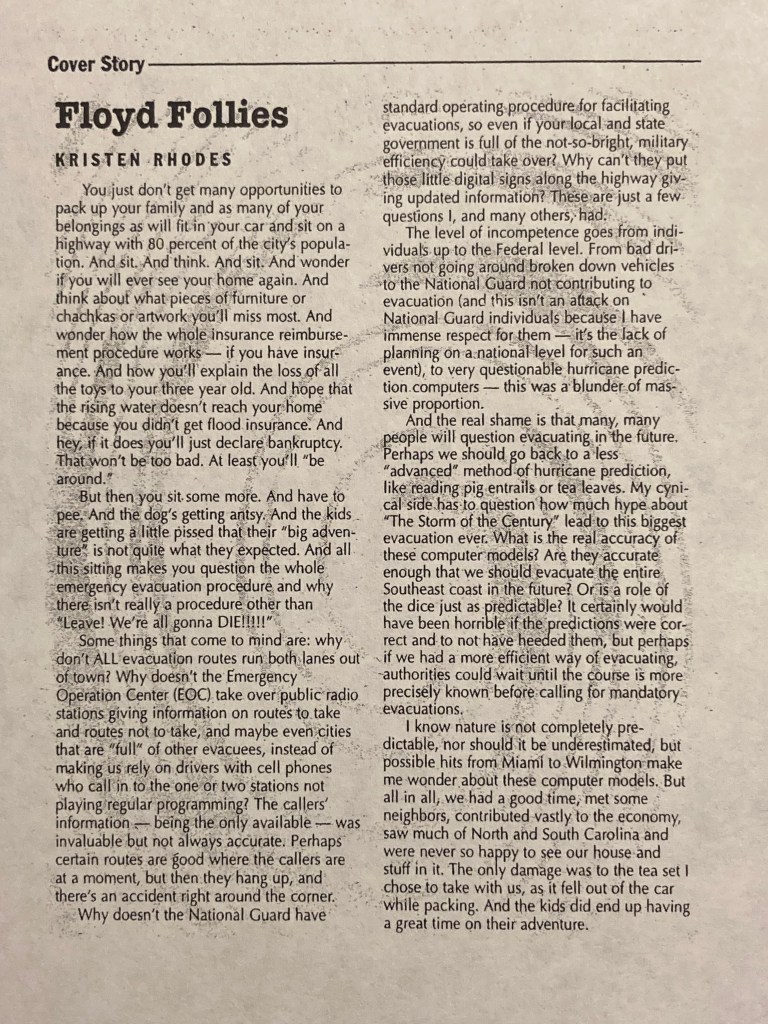 Featured image of Hurricane Floyd from the National Weather Service. https://www.weather.gov/mhx/Sep161999EventReview