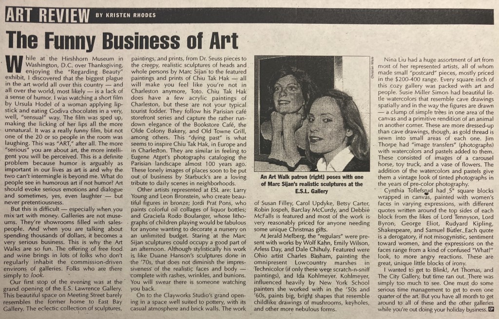 Featured image of Cynthis Tollefsrud’s “Posing with a Pachyderm” is a more recent piece, not in the above reviewed shows, taken from the artist’s website. Go there and support her and all artists: