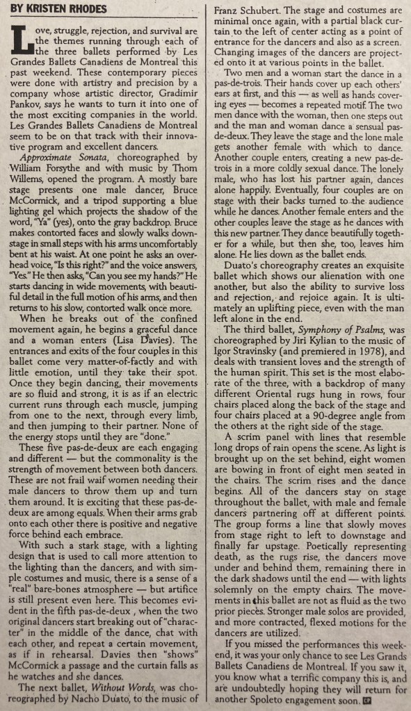 Featured image is a screen grab of a photo by Robert Etcheverry, from the upcoming contemporary dance performance, “Cantata,” taken from the website of the Les Grandes Ballets Canadiens. Please support them.